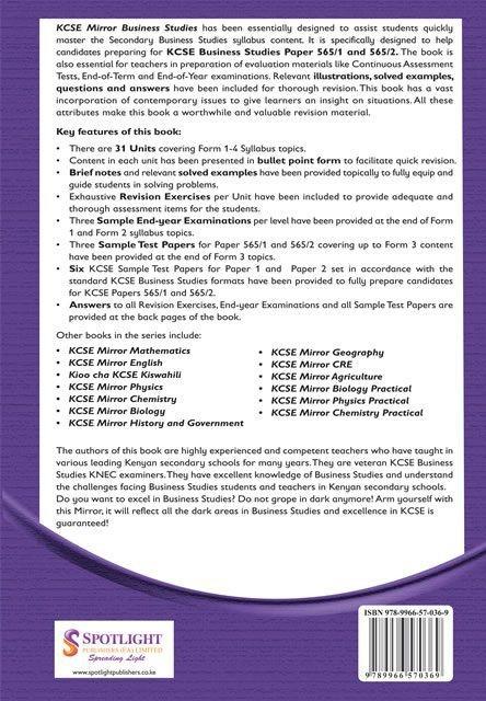KCSE Mirror Business Studies (Spotlight) is a comprehensive study guide for the Kenya Certificate of Secondary Education (KCSE) exams in Business Studies