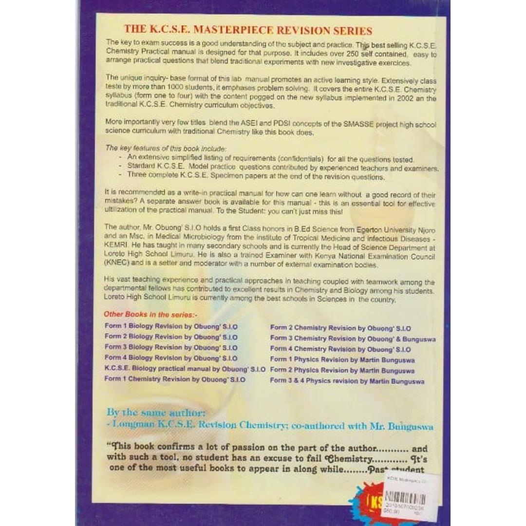KCSE Masterpiece Chemistry Practical Manual by Masterpiece Productions: A detailed practical guide for Form 2 to Form 4 students, focusing on hands-on Chemistry experiments and techniques aligned with the KCSE syllabus.