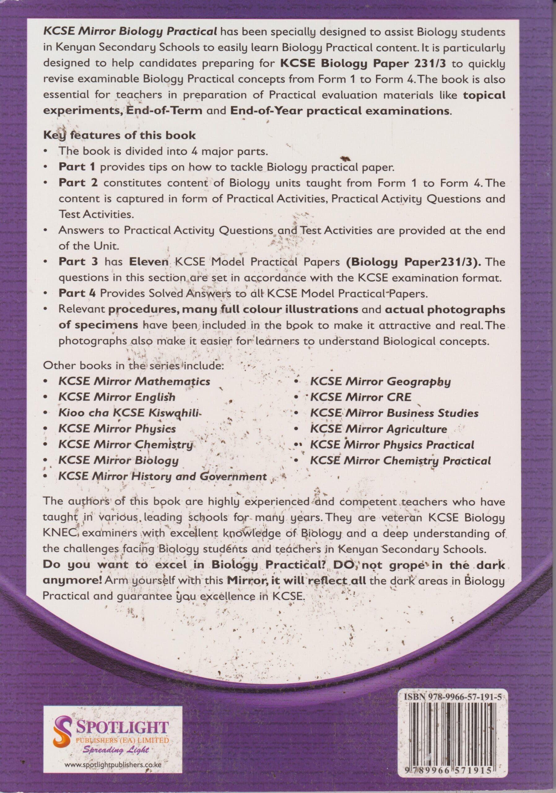 KCSE Mirror Biology Practical has been specially designed to assist Biology students in Kenyan Secondary Schools to easily