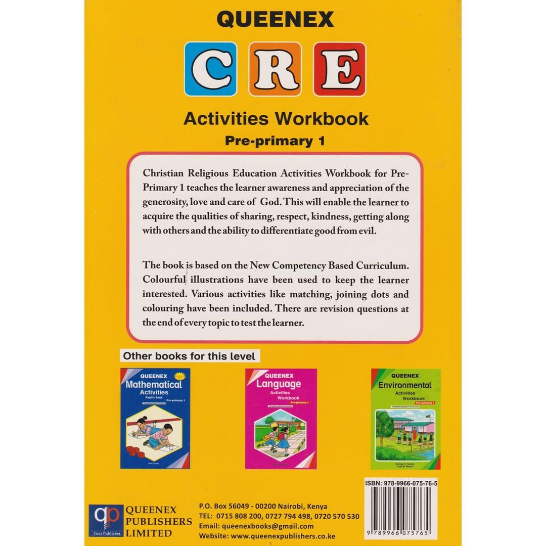 Queenex CRE Activities Workbook PP1 by Queenex Publishers Ltd: An engaging workbook designed to introduce young learners to Christian Religious Education through fun and meaningful activities.