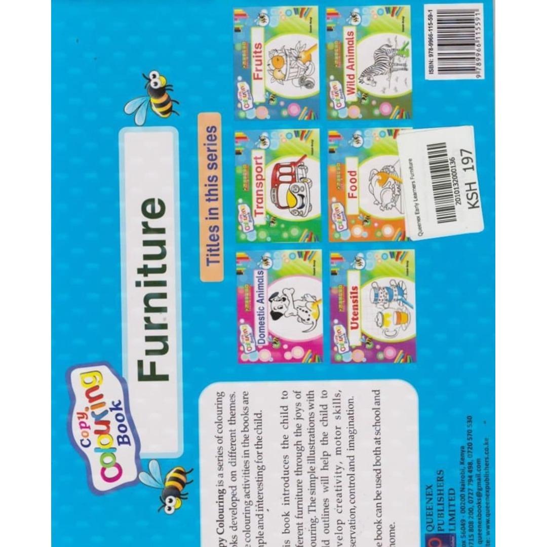 Queenex Early Learners Furniture by Queenex Publishers Ltd: A workbook designed to teach PP2 learners about furniture, fostering curiosity and learning through practical and engaging activities.