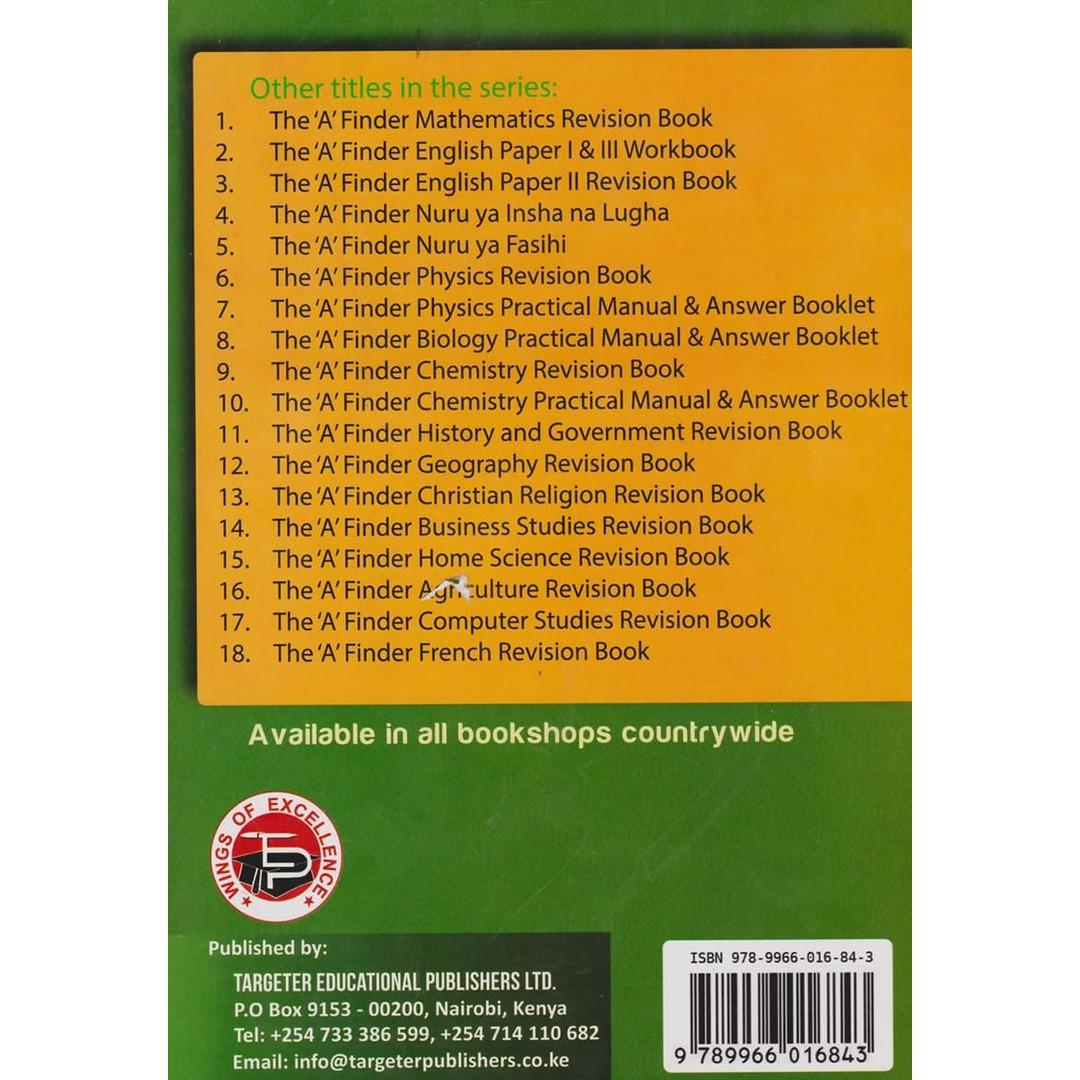 A' Finder Biology Revision Book by Targeter Educational Publishers Ltd: A comprehensive guide simplifying complex Biology concepts, offering curriculum-aligned content, and preparing students for KCSE exams from Form 2 to Form 4.