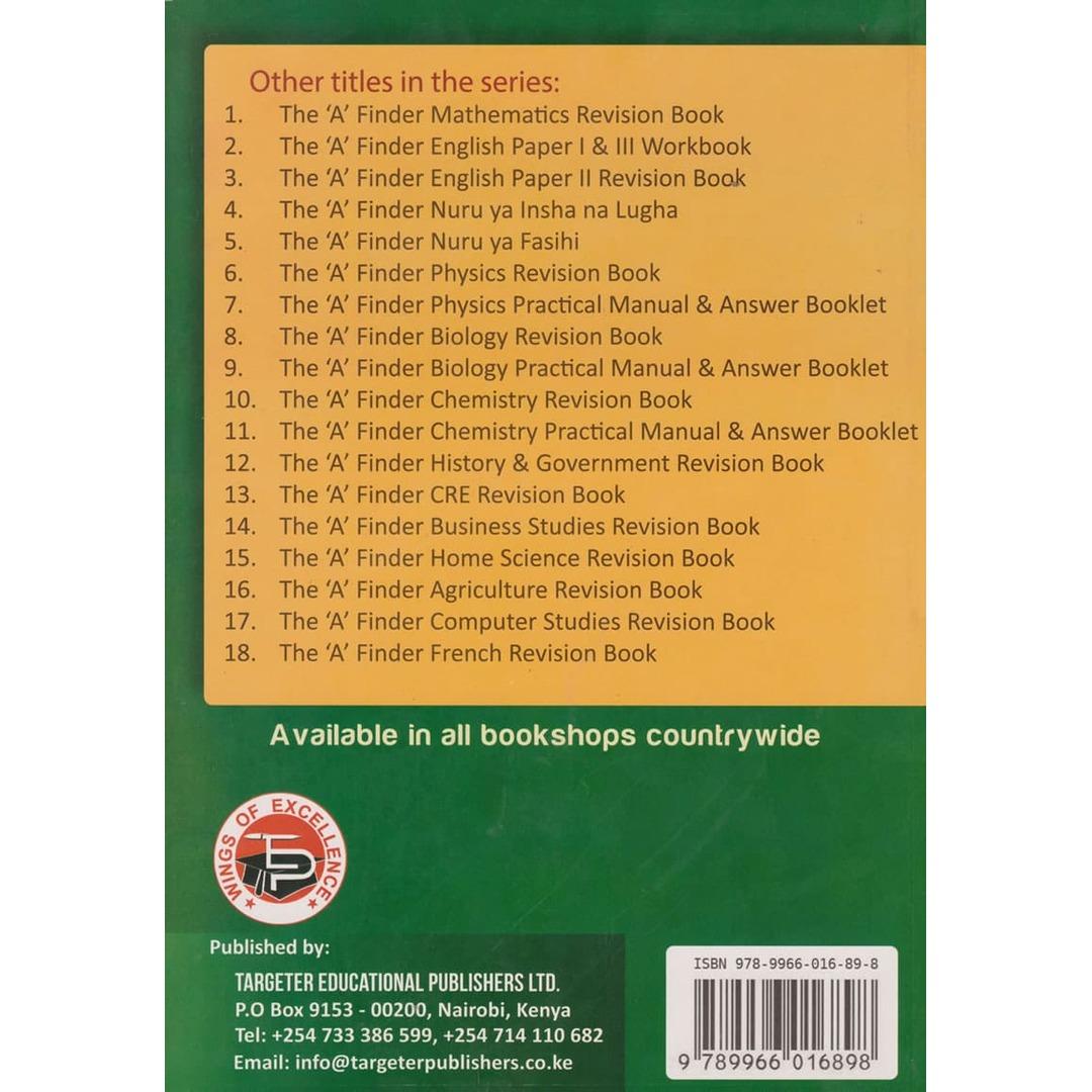A' Finder Geography Revision Book by Targeter Educational Publishers Ltd: A KCSE-aligned resource providing in-depth coverage of key geographical topics, structured exercises, and real-world case studies for Form 2 to Form 4 students.