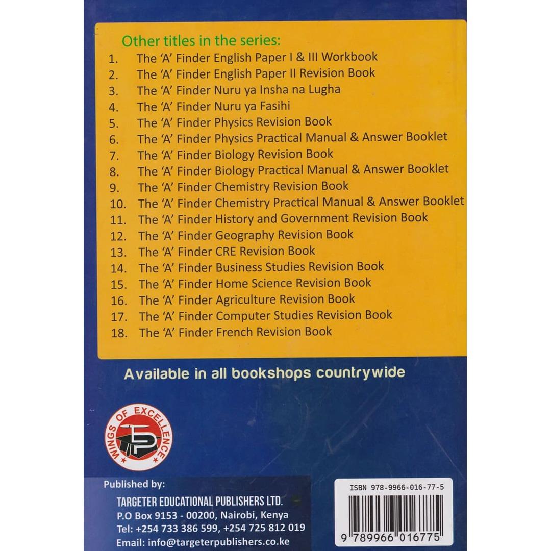 A' Finder Mathematics Revision Book by Targeter Educational Publishers Ltd: A KCSE-aligned resource simplifying complex mathematical concepts, offering worked examples, and providing exam-focused exercises for Form 2 to Form 4 students.