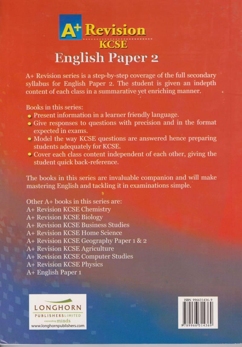 The KCSE English Paper 2 is a critical component of the Kenya Certificate of Secondary Education examination. To achieve an A+ grade, it's essential to understand the exam format, content, and marking scheme. The paper typically consists of comprehension passages, poetry, and prose analysis, as well as essay and short-answer questions. Strong command of language, vocabulary, and comprehension skills are necessary to excel in this paper. Students should familiarize themselves with the examination format and practice writing essays and analyzing literary texts to achieve an A+ grade. Revision should focus on areas such as syntax, vocabulary, and comprehension.