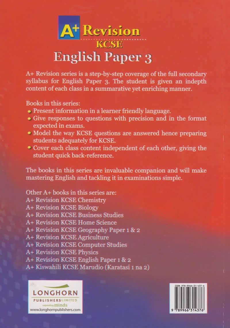 A+ Revision series is a step-by-step coverage of the full secondary syllabus for English Paper 3. The student is given an in-depth content of each class in a comparative yet enriching manner.