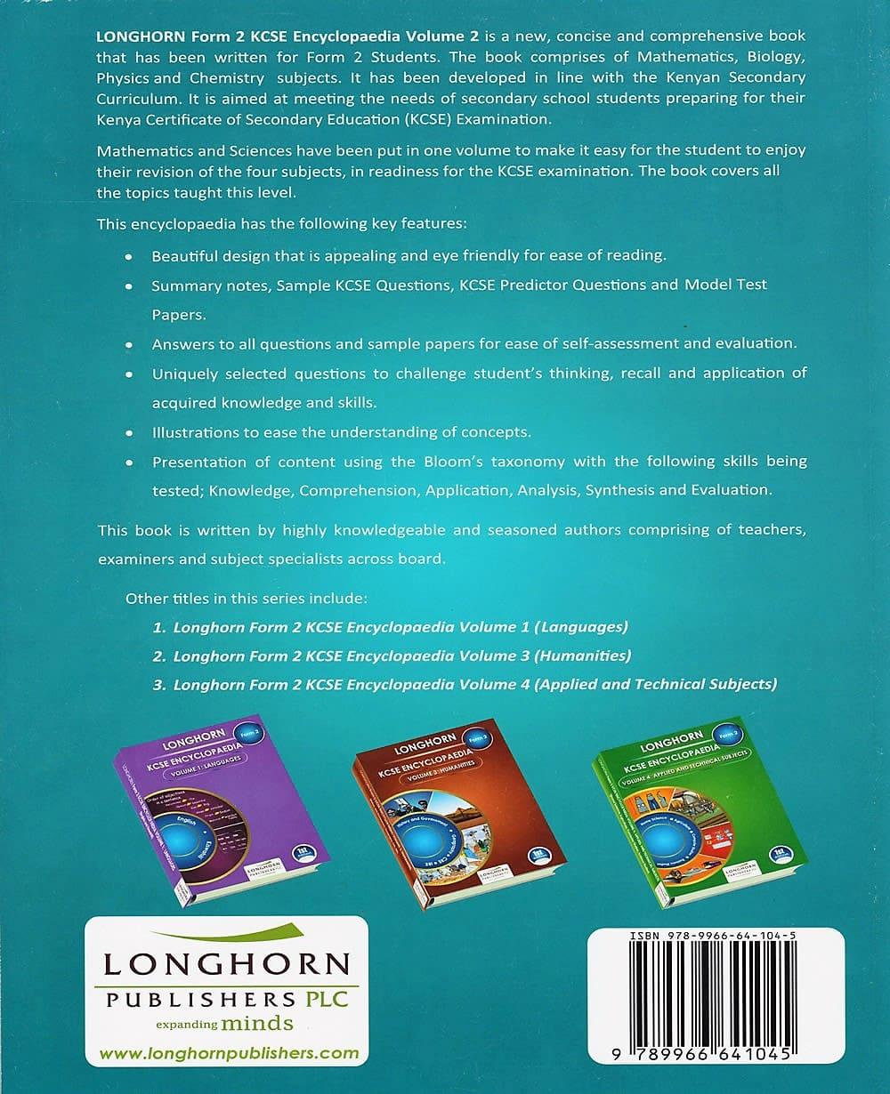 TITLE: LONGHORN KCSE ENCYCLOPEDIA F2 VOL 2 MATHS & SCI