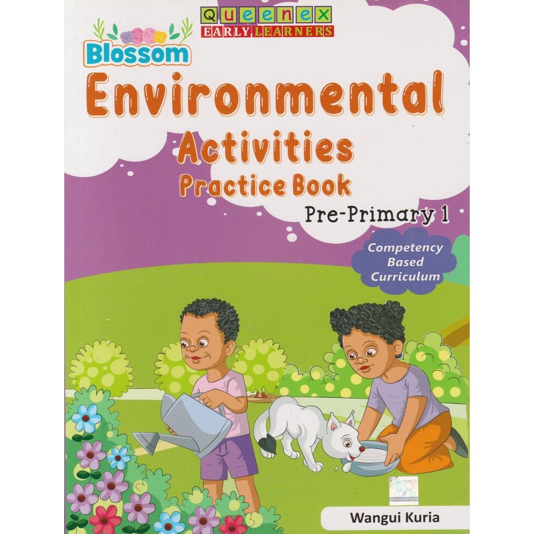 Queenex Blossom Environmental Act Practice PP1 by Queenex Publishers Ltd: A workbook designed to enhance PP1 learners' environmental awareness and practical skills through fun and interactive activities, fostering care for their surroundings.