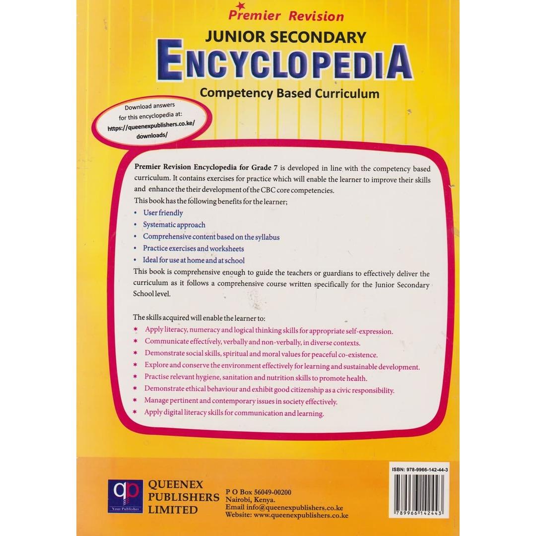 Queenex Junior Secondary Encyclopedia Grade 7 by Queenex Publishers Ltd: A detailed and well-structured encyclopedia designed to support Grade 7 learners in mastering key concepts and excelling in their studies.