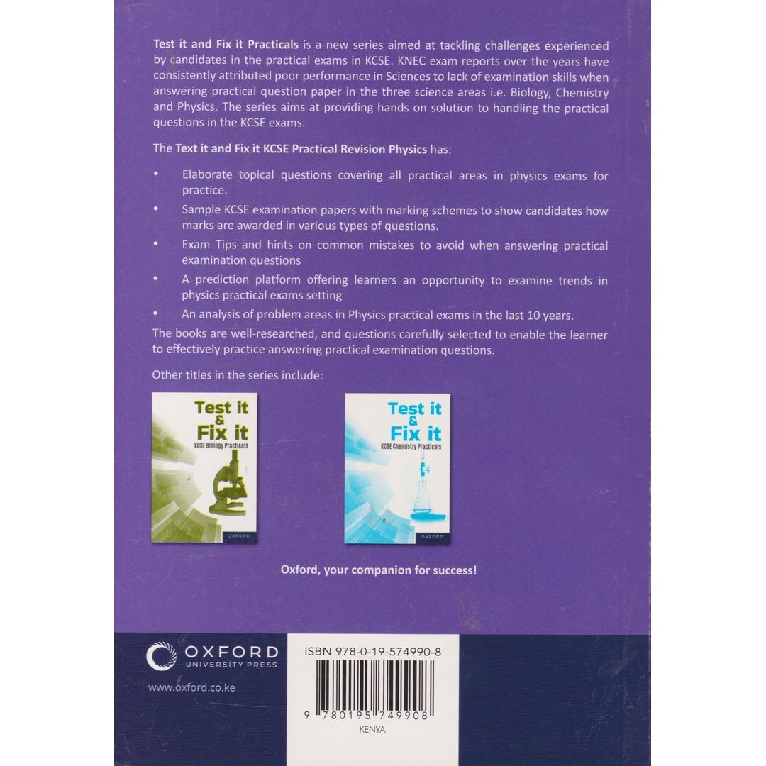 Test it & Fix it KCSE Physics Practicals (Oxford) by Oxford University Press: Reinforces physics concepts through structured practical exercises designed for KCSE exam readiness.