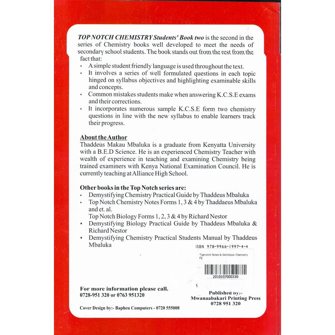 Topnotch Notes & Workbook Chemistry F2: A comprehensive workbook designed to help Form 2 students understand and excel in Chemistry.